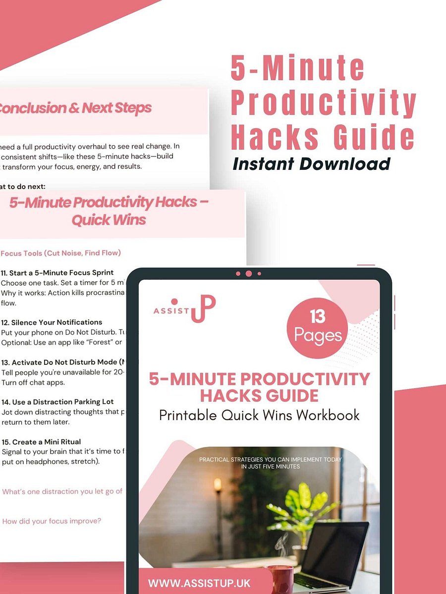 The 5-Minute Productivity Hacks Workbook is your quick-start solution. Packed with practical, easy-to-implement strategies, this printable guide helps you make the most of your time—even if you only have five minutes.